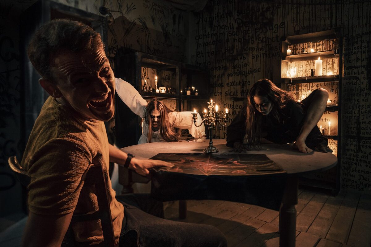 Наш визит в перформанс по легенде представлял собой подбор дома для вечеринки. Судя по антуражу и площадке, этот дом идеально подойдет для Хеллоуина или собрания адептов-демонологов. Ведь именно здесь хранится главная реликвия всей нечисти – доска дьявола Уиджи!